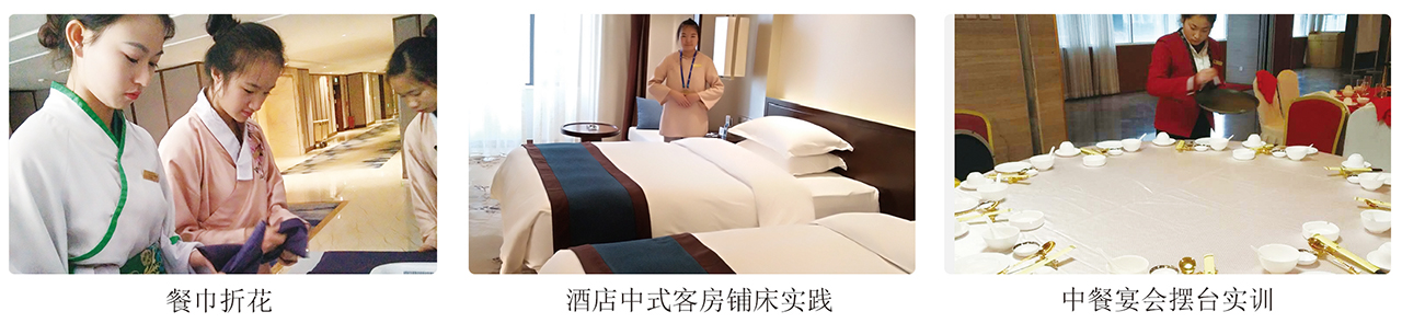 培养具有现代管理理念、水平的高星级酒店前厅、客房、餐饮、娱乐、康体等业务部门的服务员、领班、主管及部门经理。订单班有国际邮轮班、泰丽酒店班、中凰酒店班。2018年省赛团体一等奖。