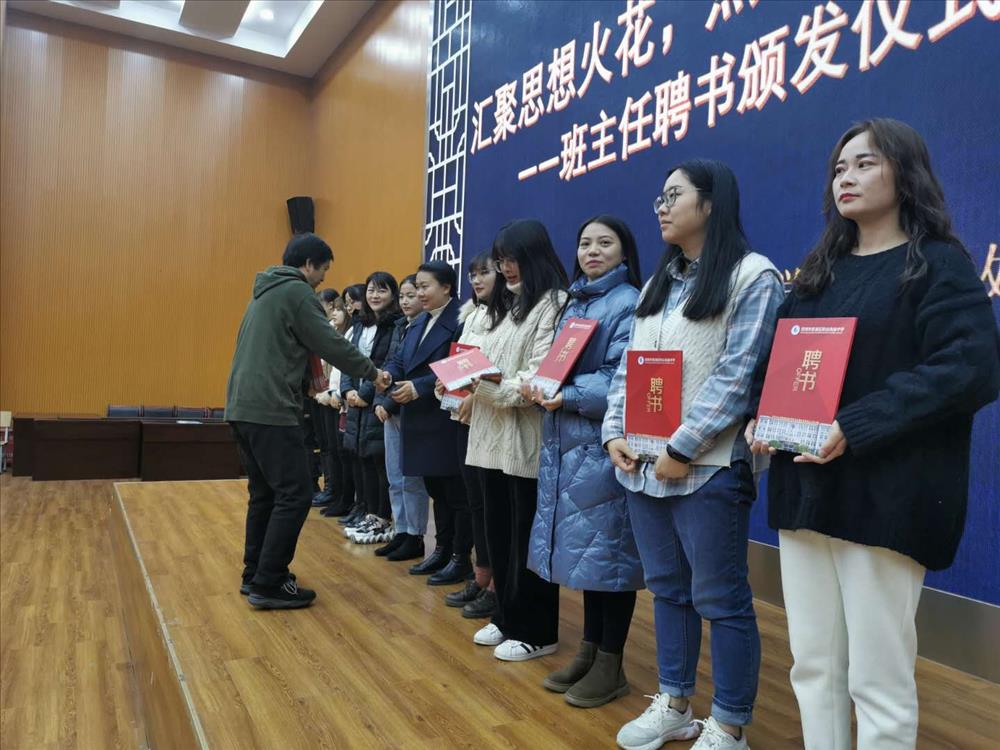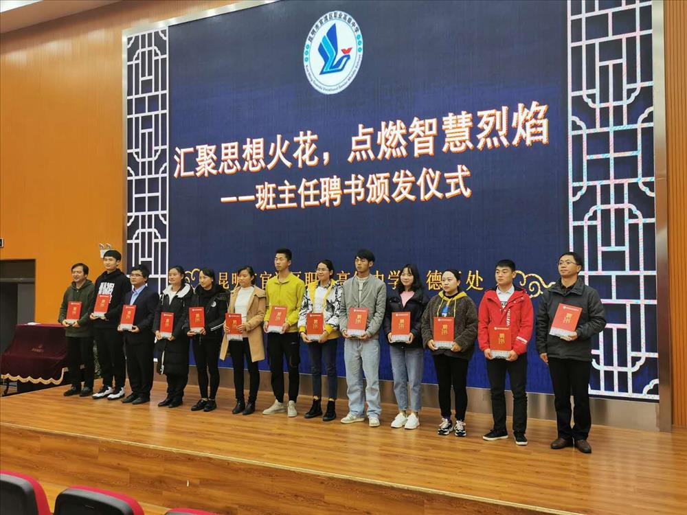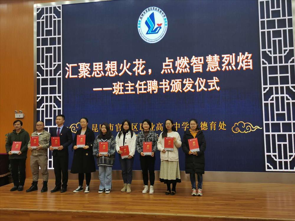 德育、团委、保卫讯:班主任是学校教育最直接的管理者和教育者,为了进一步优化我校班级管理队伍结构,深化学校管理制度改革。11月03日下午16:30,官渡区职业高级中学德育处组织全体班主任在尚诚楼阶梯教室开展“汇聚思想火花,点燃智慧烈焰”班主任聘书颁发仪式。学校李存副校长、德育处郜猛主任出席并指导本次活动。