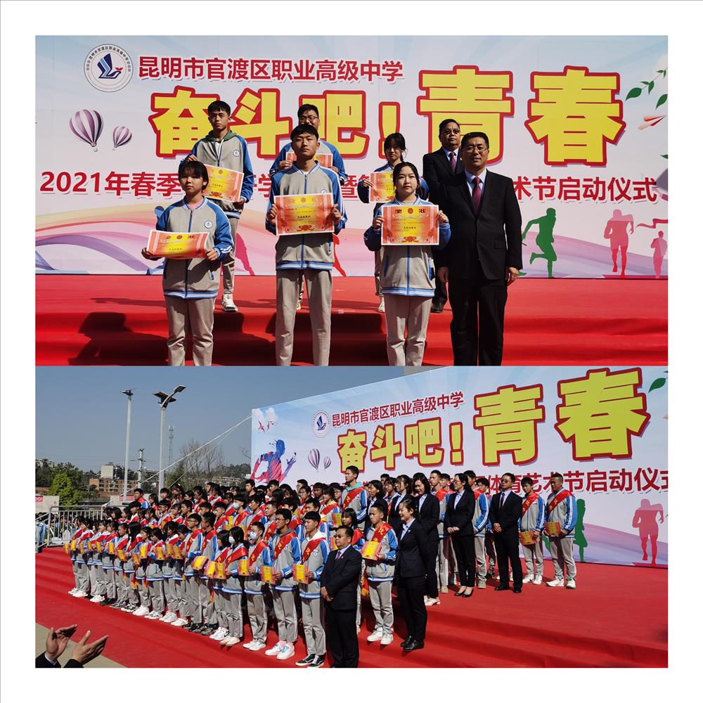 德育、团委、保卫讯:度过喜悦、祥和、短暂的寒假,踏着春天的脚步,带着新的心情、新的希望、新的目标我们又步入了一个新的学期。3月1日上午10:00,迎着崭新的晨光,官渡区职业高级中学全体师生齐聚升旗广场,举行了隆重的2021学年春季学期开学典礼暨第五届体育艺术节启动仪式。