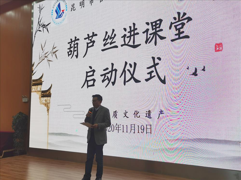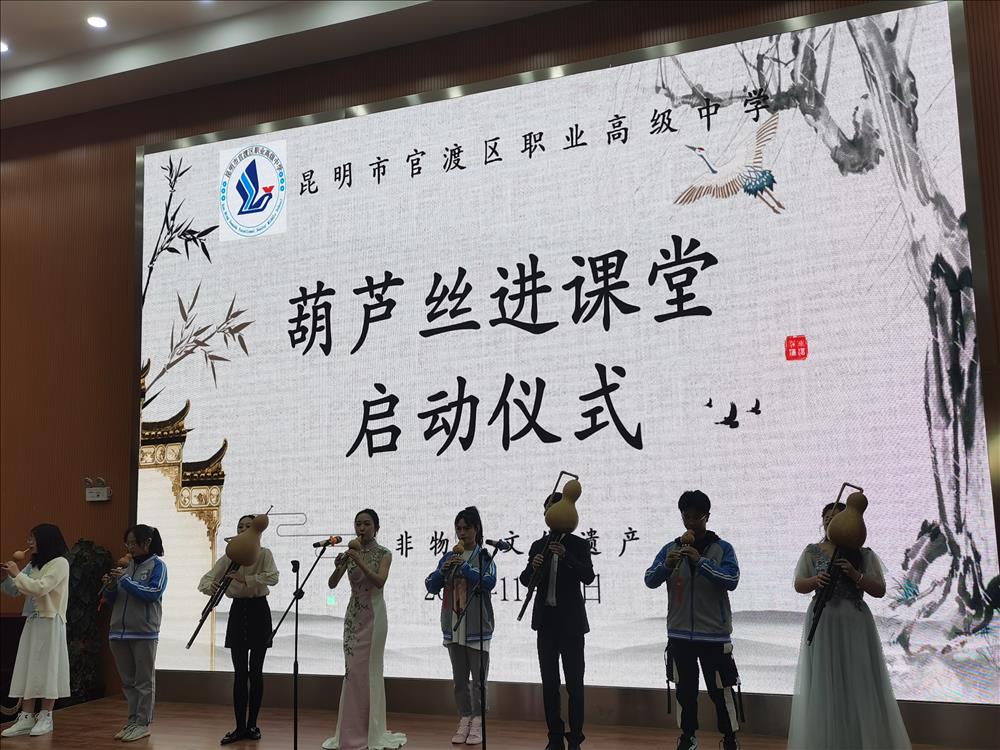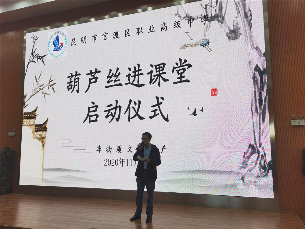 德育、团委、保卫讯:为弘扬中华优秀传统文化,传承民族民间艺术,展示校园特色,丰富学生的课余生活,激发学生热爱生活的热情,我校于2020年11月19日17:00在尚诚楼阶梯教室开展了官渡区职业高级中学民族特色文化创业园非物质文化遗产葫芦丝艺术进校园启动仪式。