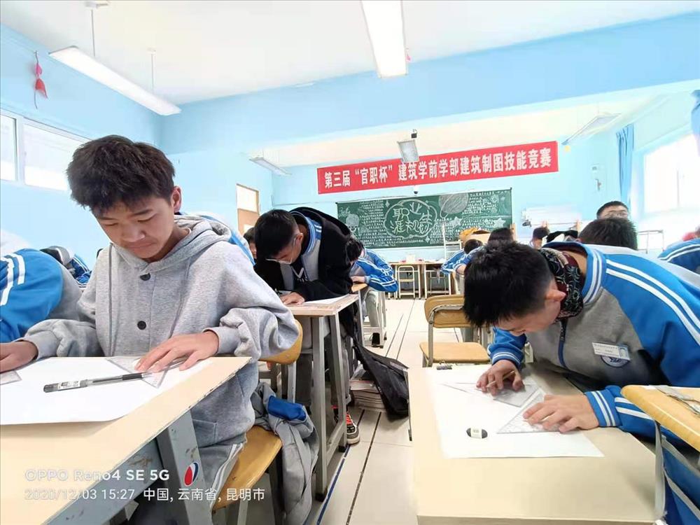 “天高任鸟飞,海阔凭鱼跃”,为秉承给猴子一棵树,给老虎一座山,给学生一个舞台,学生还我们一个奇迹的办学理念,推动职业教育发展,构建更加完善的职业教育培养体系,彰显职教风采,弘扬工匠精神,昆明市官渡区职业高级中学于2020年12月3日举办了第三届 “官职杯”技能大赛,建筑学前学部的师生积极筹备了专业技能大赛,并为20级建筑两个班的全体同学设计了 “建筑制图比赛”这一赛项。
