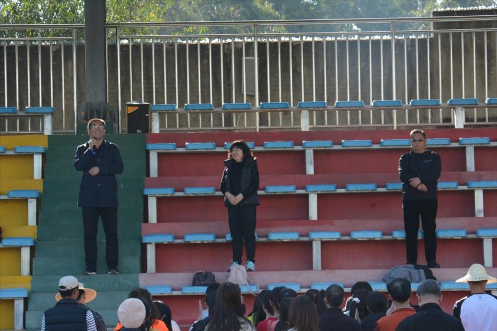 下午15:30分,路小军校长宣布2020年官渡区职业高级中学第五届教职工趣味运动会开幕。出席开幕式的还有学校党支部书记张毕祥、副校长徐志雄、杨燕、李存和校长助理冷建文老师,以及学校全体教职员工和部分学生志愿者。开幕仪式由工会主席郭丽霞老师主持,简短的开幕仪式后,由体育教研组老师们带领全校教职员工做赛前热身操——头手操,比赛即将开始。