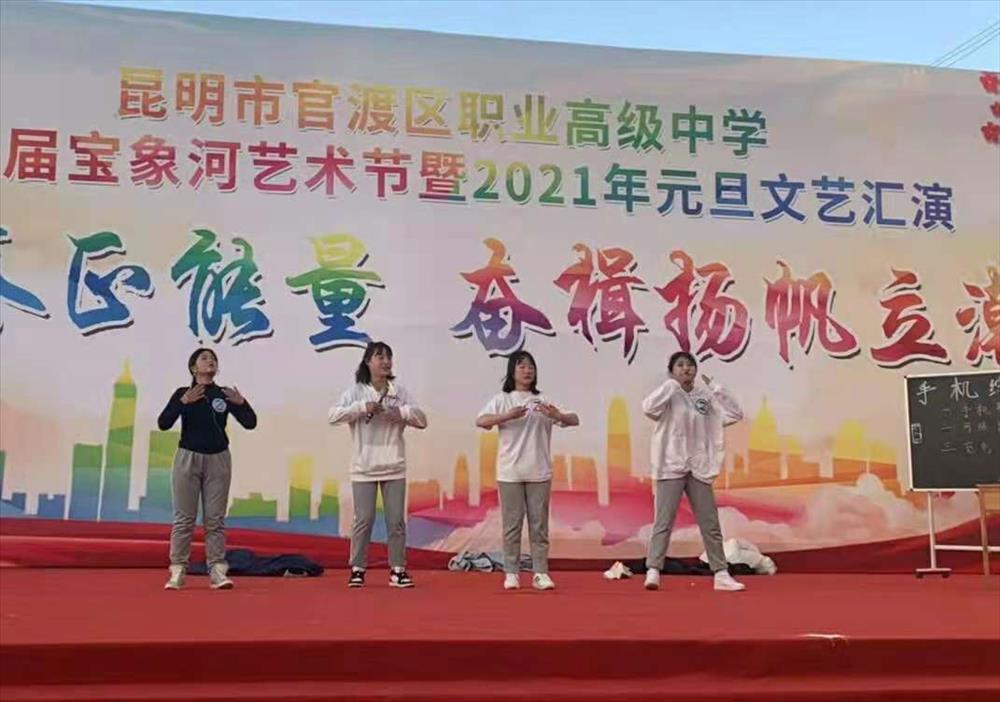 在19学前中专班带来的儿童舞蹈《熊出没》的一片欢声笑语中晚会正式拉开帷幕。由19建筑中专班带来《平凡之路》的吉它弹唱青春洋溢,让同学们不自觉地随之而歌唱。由18学前中专班带来的群舞《傣•忆》用曼妙的舞姿,悦耳动听地傣家音乐,将民族风采展现的淋漓尽致;由19学前大专1班和19建筑中专班带来的小品《手机综合症》、《人贩子》幽默风趣的造型,搞怪的动作,以及贴合实际生活的情节让同学们在捧腹大笑的同时又能发人深省,让同学们去思索如何如何防骗,如何权衡手机等娱乐和自己的学习;由19学前大专2班带来的舞蹈《欢天喜地过大年》瞬间将晚会又送上了一个新的高潮,在一片“过年了,过年了…”的欢快歌声里和欢快喜庆的舞蹈中,让过年的欢乐传递到每位同学心中。