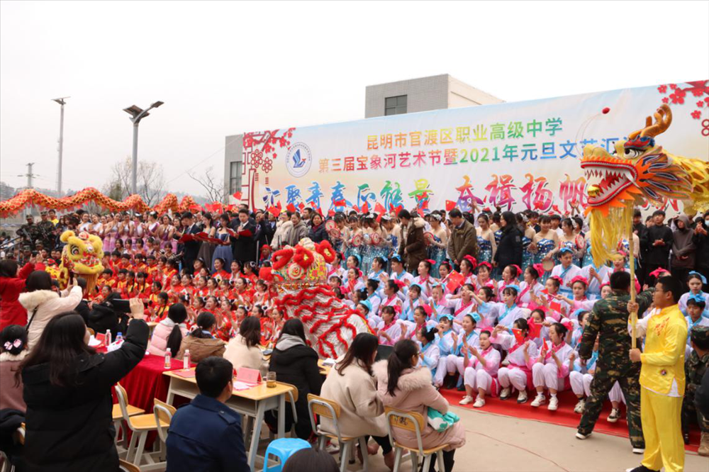 新的一年开启新的梦想,新的一年翻开新的篇章,新的一年怀揣新的希望,新的一年再铸新的辉煌。2020年12月31日上午8点半,昆明市官渡区职业高级中学的全体师生相聚在学校升旗广场,和线上的学生家长共同观看“汇聚青春正能量 奋楫扬帆立潮头”昆明市官渡区职业高级中学第三届宝象河艺术节暨2021年元旦文艺汇演。