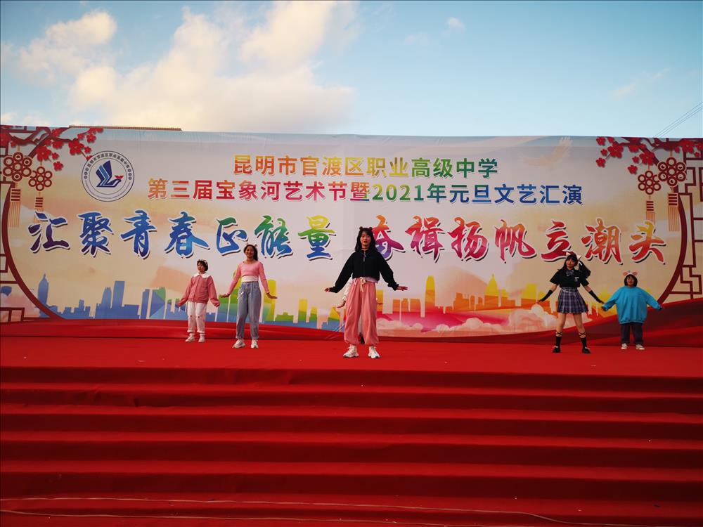 整场演出简洁而热烈,虽然室外气温很低,但师生们的热情却丝毫未减。有各班的精心准备,学生们的全情表现,演出获得圆满成功。学部的这次元旦文艺汇演,给了多才多艺的学生们展示自我的机会,丰富了同学们校园文化生活,师生共聚一堂其乐融融,相信未来信息技术学部的师生们将贡献更多的素质教育成果,展现官渡职中师生的风采。