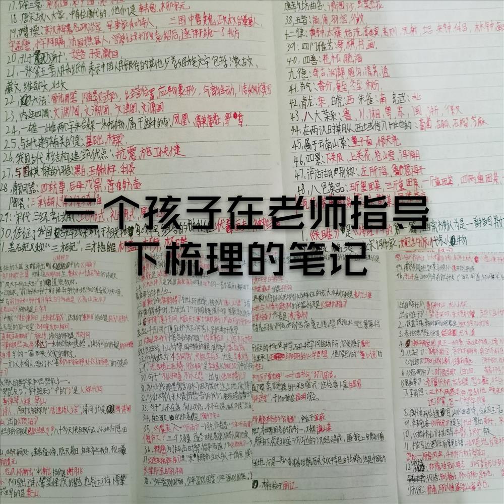 本次竞赛内容涵盖了孔子与儒家文化、家风家训、汉字艺术、书法篆刻、京剧、传统建筑、古代教育、中医中药、茶文化、传统音乐、碑拓版画、剪纸艺术、武术武学、节庆饮食、民族民间艺术以及抗击疫情相关的中华优秀传统文化内容,其中云南本土优秀传统文化占竞赛内容的20%。张瑞老师在梳理完十一本组委会指定书目和查阅了历年题库后,制作了图文并茂、突出重难点的ppt,指导三名同学系统地归类梳理比赛重难点,三名同学的笔记改了又改,不断地用红笔添加老师补充的知识点。班主任王龙老师、秦宇斌老师也利用课余时间认真辅导三个孩子,督促孩子们记忆知识点。