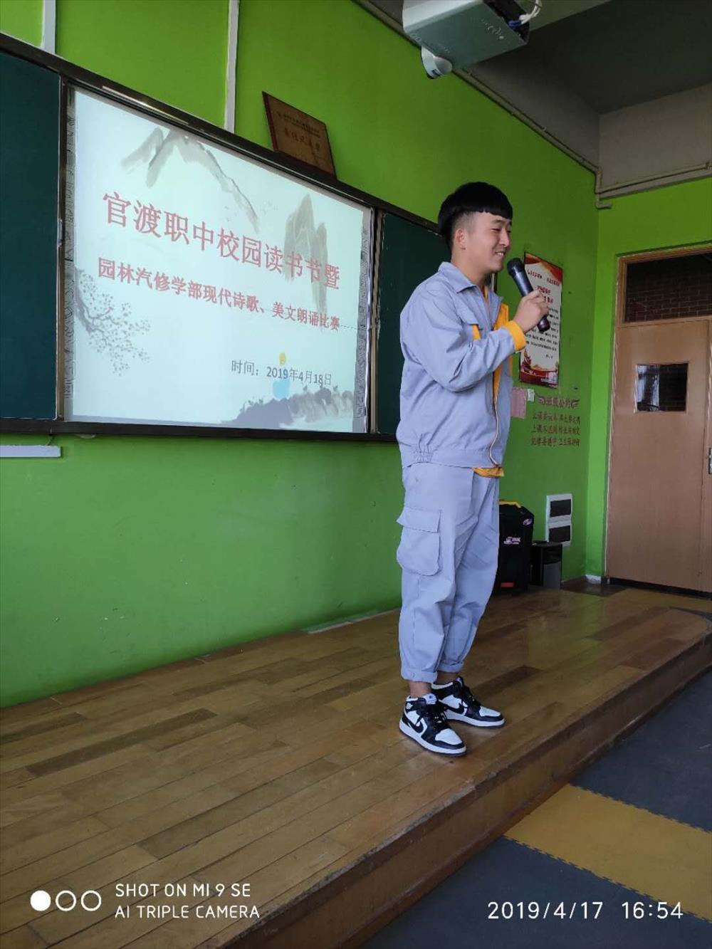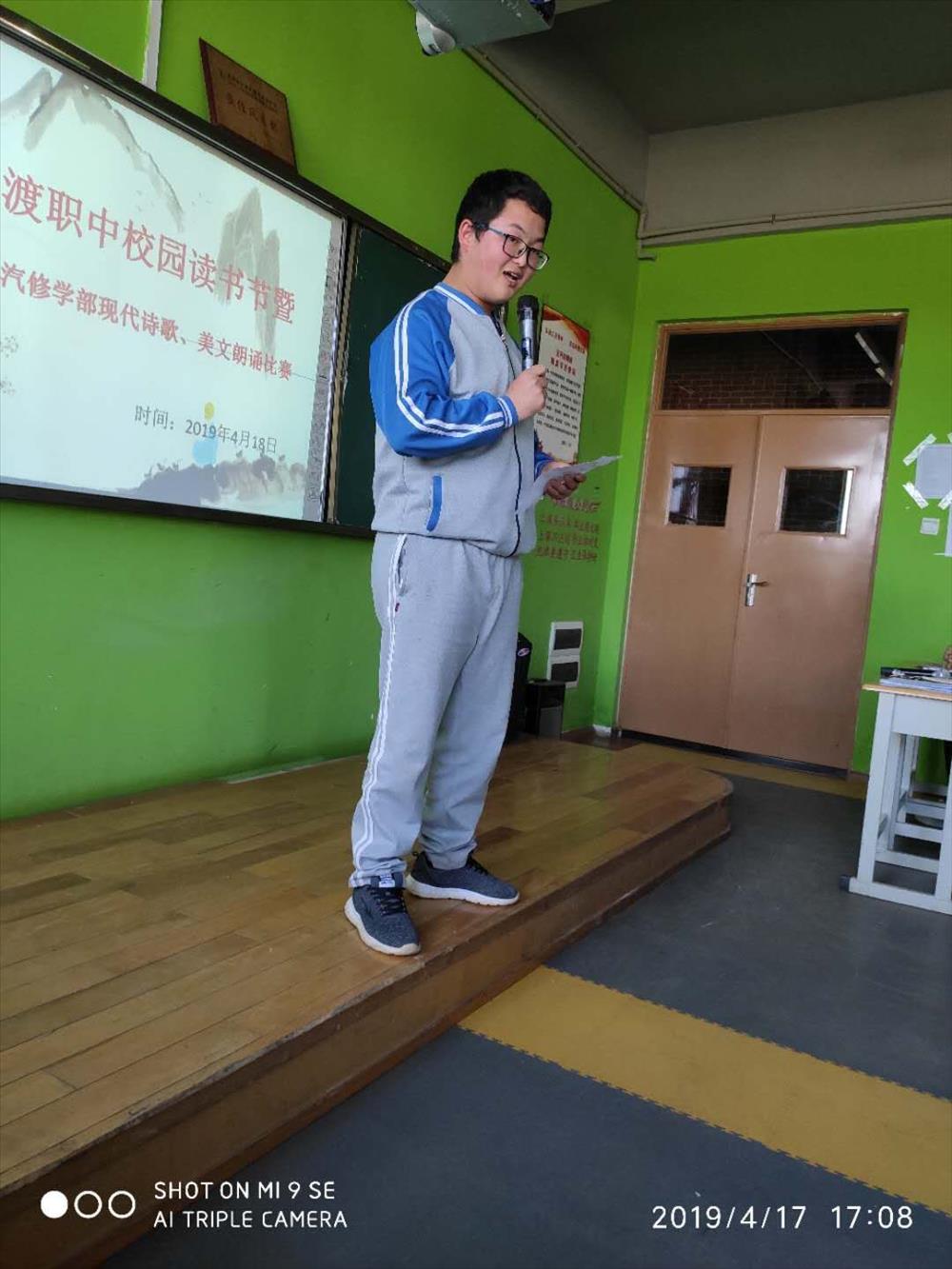 “读史使人明智,读诗使人灵秀。”伴随着昆明市官渡区职业高级中学校园读书节活动的开展,园林汽修学部积极响应学校号召。2019年4月17日16:30分,我学部在3012教室举行现代诗、美文的朗诵比赛,园林汽修学部的参赛选手都充满了激情与斗志,同学们情感丰富的语调,镇定自若的神情,丰富得体的动作,比赛现场一片热闹、祥和。经过一个小时的角逐,现代诗歌、美文朗诵比赛圆满结束;其中18级机电2班的李江涛取得第一名的好成绩、17级AYEC班的王府勇获第二名、17级新能源2班的徐李祥获第三名,三名同学将代表学部参加全校的现代诗歌、美文朗诵比赛,希望他们能取得好成绩,为学部增光添彩。