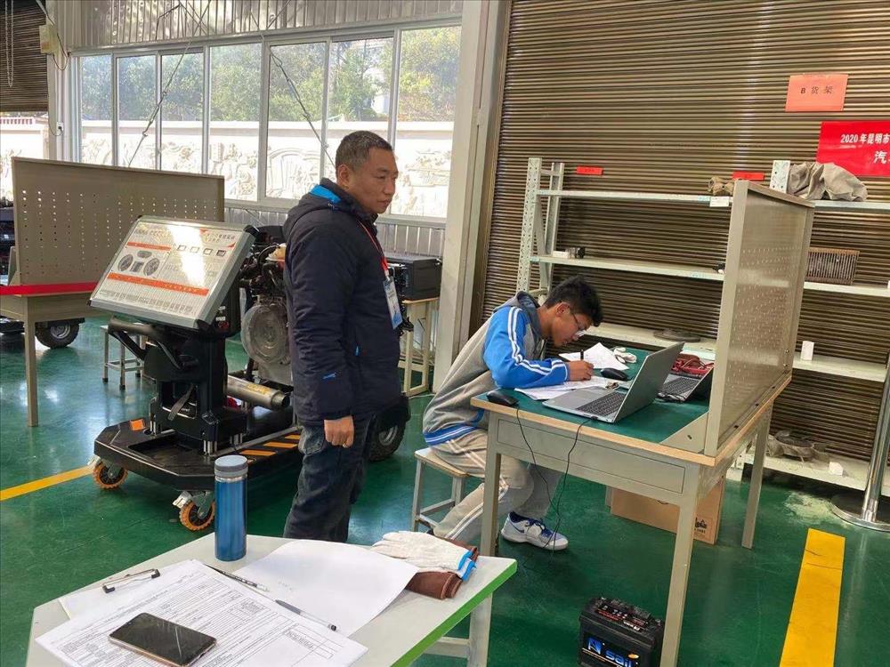 为更好地将学生培养成技能型人才,提高学生专业技能水平,我校探索实施“1+X”的证书制度,其中“1”是指学历证书,“X”是指若干职业等级证书。这项制度为我校打通了学生学历教育和职业培训之间的区隔,进一步加快了复合型技能人才的培养。学生经过长时间的学习培训后,2020年12月23日,园林汽修学部53名同学参加了“1+X”汽车维修与运用证书的考证。在考证的前期,朱天斌老师、朱熙河老师、杜仲蕊老师对学生的考证工位进行了相应布置,并严格按照考证的要求检查工位。本次考证包含了四个项目:线路读图与电子元件检查、起动与充电系统检查保养、灯光与电器系统检查保养、空调与舒适系统检查保养。考场每一个项目两个工位,共布置八个工位。