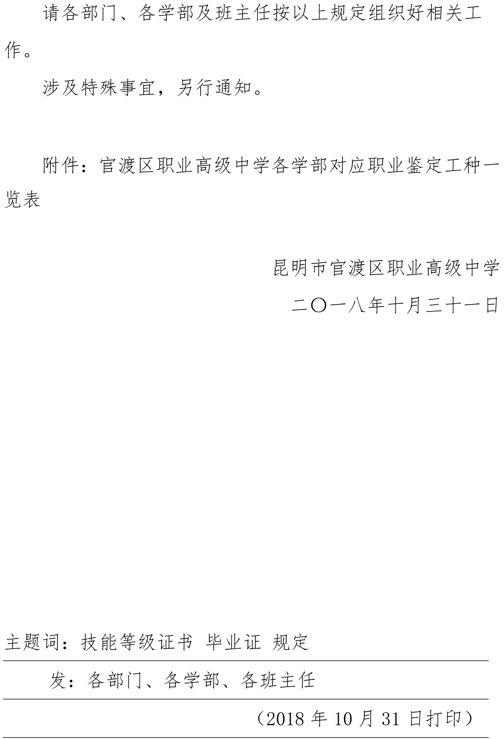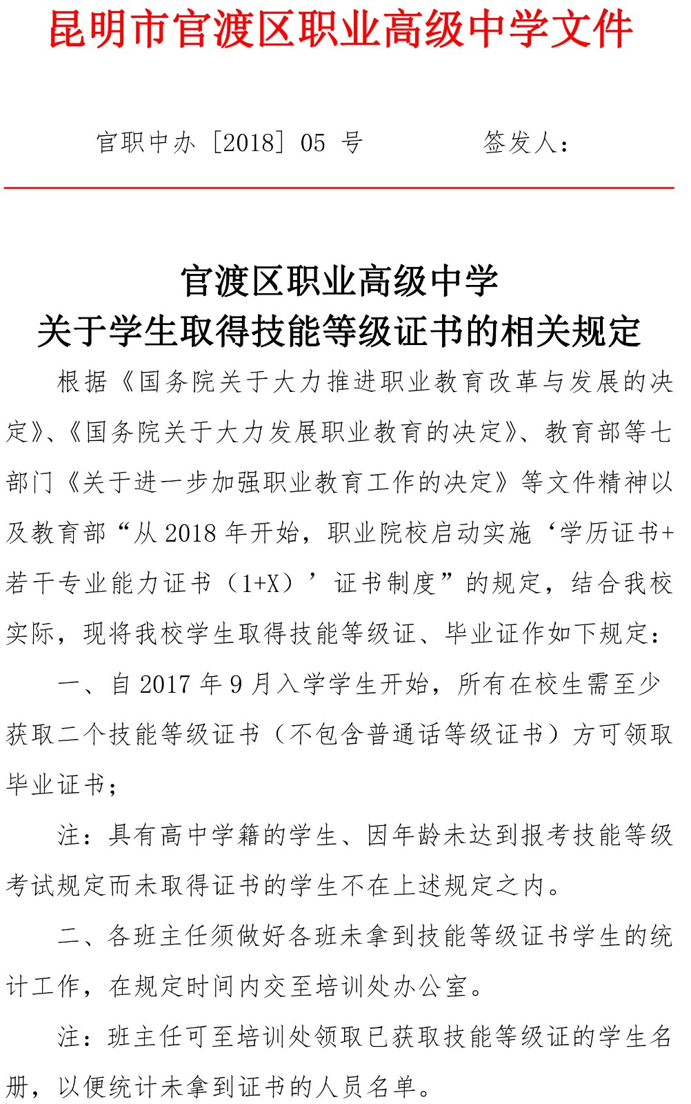 官渡区职业高级中学关于学生取得技能等级证书的相关规定