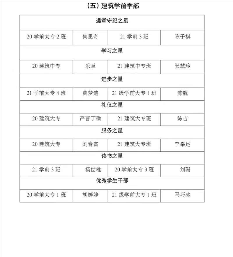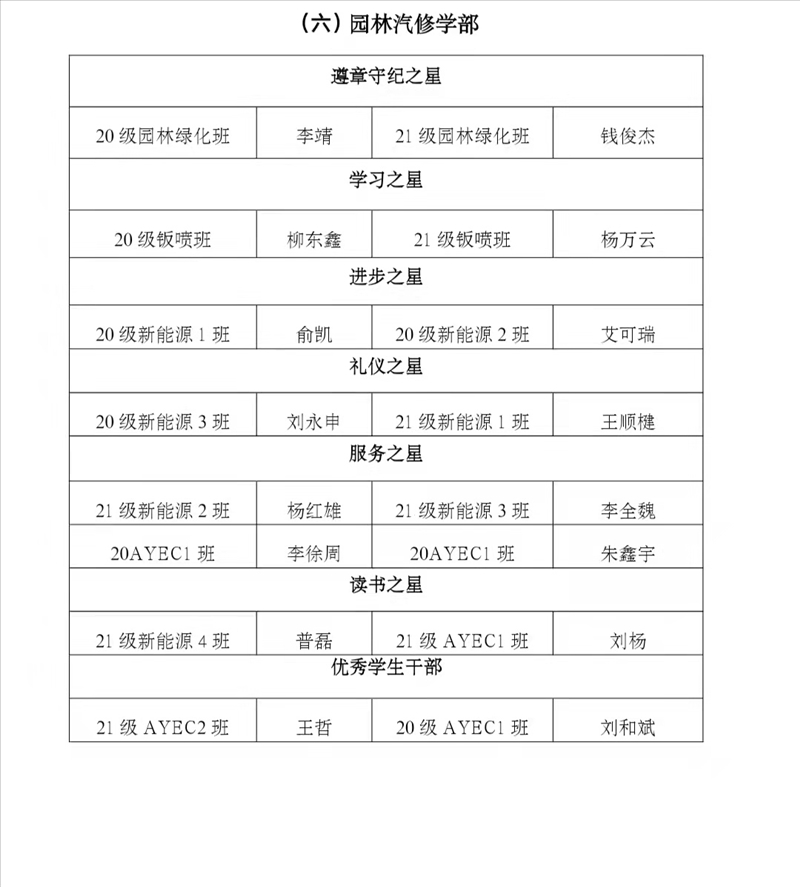 一、班主任之星、教官之星表彰