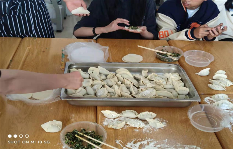 让美食更香的做法就是在其中加入辛勤的汗水。想吃上热腾腾的饺子就要动起手来,现代服务学部的每一个班都配备了几名20级中餐烹饪班的“小老师”,“小老师”们带领大家一起包饺子。每位同学在烹饪班同学的帮助下都大显身手,包出来的饺子有月牙形的、元宝状的、还有柳叶型的……一个个可爱的饺子,像极了一张张可爱的笑脸。