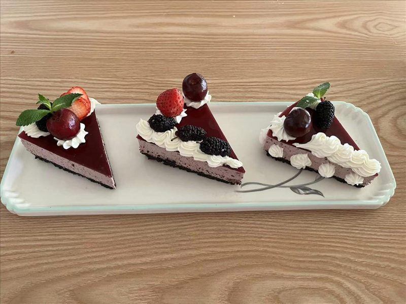 烹饪专业的同学则是以小组为单位制作面点。各小组可自行选择制作内容,在规定的时间内完成比赛。有的小组做抄手,有的小组做酸奶麻花,还有的小组制作慕斯蛋糕等等。整个比赛体现的是团队的凝聚力和创新能力,团队的合作与作品的成功息息相关。分工明晰、步骤明确的小组总是能成功地完成目标。厨房里的工作不是单一无序的,学会分工合作,方能缔造出更加令人惊叹的美食佳肴。
