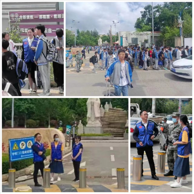 学校大门位于道路交叉口旁边,原本车流量就比较大,外加接送学生的车辆,经常会造成道路拥堵的情况。针对这样的情况我校采取了一系列的措施,一是每次放学时都有数名交警进行指挥和疏散来往车辆;二是提前安排专门的公交车辆在校内候车,让学生不出校门就坐上回家的车;三是离校时组织学生集合,强调安全事项,如带好口罩,不在校门口打车和滞留等等,然后按学部按年级按班级有序依次离校;四是设置党员护学岗,科学安排部署党员老师,协助保卫科,交警队,社区各方开展护学工作。如在学校门口周边五百米范围内的重要点位,分别安排党员老师站岗值守和巡查,提醒学生带好口罩,带好个人物品,维护交通秩序等等。做到安全事故的零发生,做到学生放学与党员老师护学同频共振,服务好学生放学的“最后五百米”。