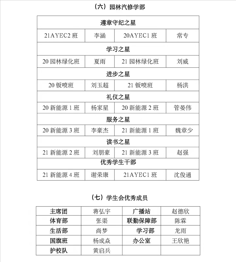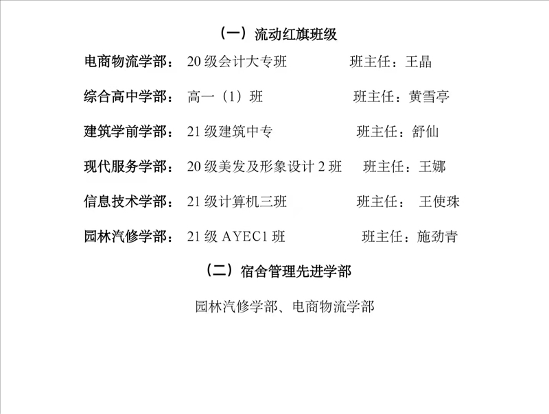 一、班主任之星、教官之星表彰