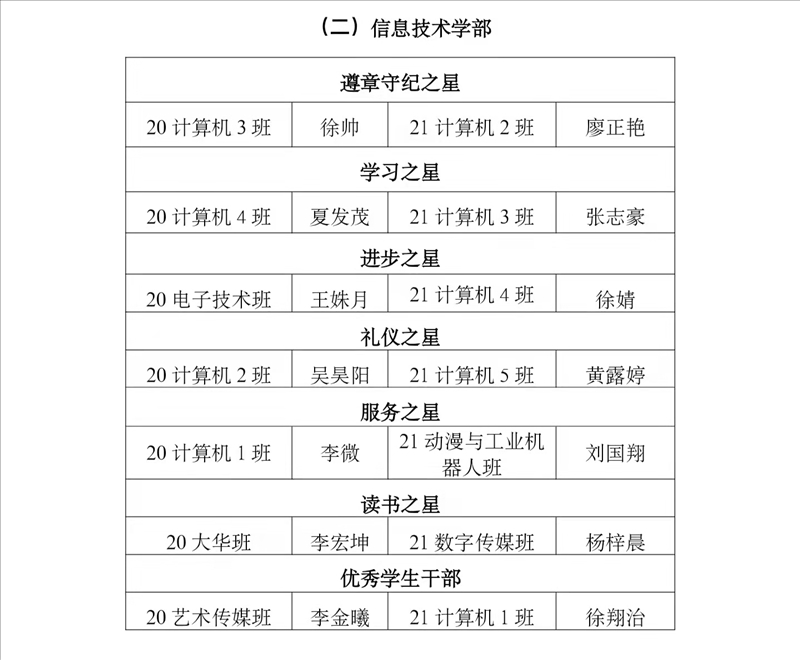 二、先进个人之星表彰