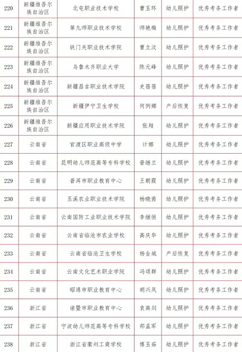 2021年度1+x幼儿照护/产后恢复职业技能等级证书优秀考核站点(全国308所),其中,云南省有8所学校,我校为其中一所(高职院校5所,中职学校3所)