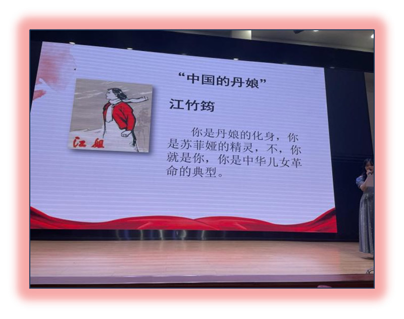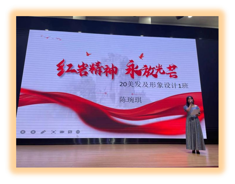 老一辈无产阶级革命家、共产党人和革命志士在风雨如磐的斗争岁月中形成的“爱国、奋斗、团结、奉献”的革命精神一直感动着我们。20级美发及形象设计1班陈琬琪同学分享的《红岩》带我们走进那段峥嵘岁月。可爱的小萝卜头,勇敢的江姐……多少红岩英雄们为了祖国光明的未来,苦苦坚守,浴血奋战!英雄已逝,他们的鲜血化作冬日盛放的红梅,凝结成动人心魄的红岩精神。我们将铭记《红岩》中的英雄,让红岩精神永放光芒!