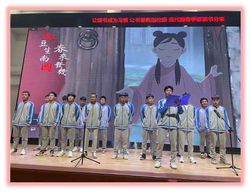 读书本身就是一种幸福,我们穿梭于书本的字里行间,倾听不同的故事,探索多样的人生。同学们的读书分享充满着爱与希望,自信与力量。主持人宣布现代服务学部读书分享活动正式开始。