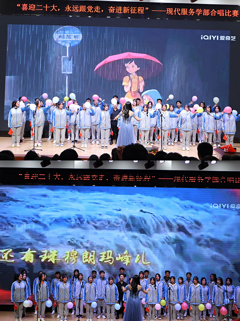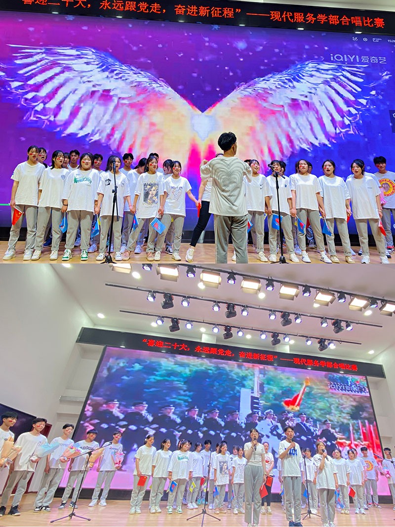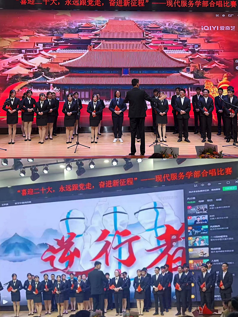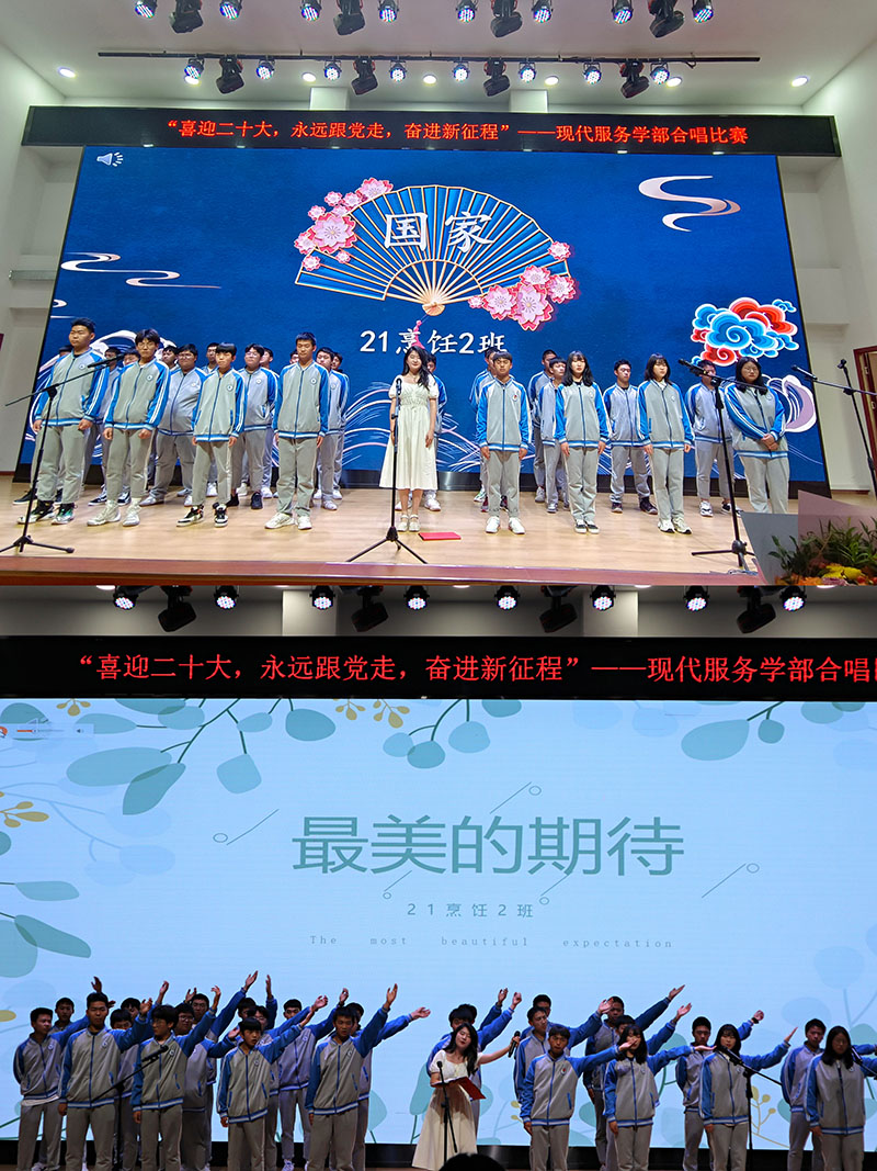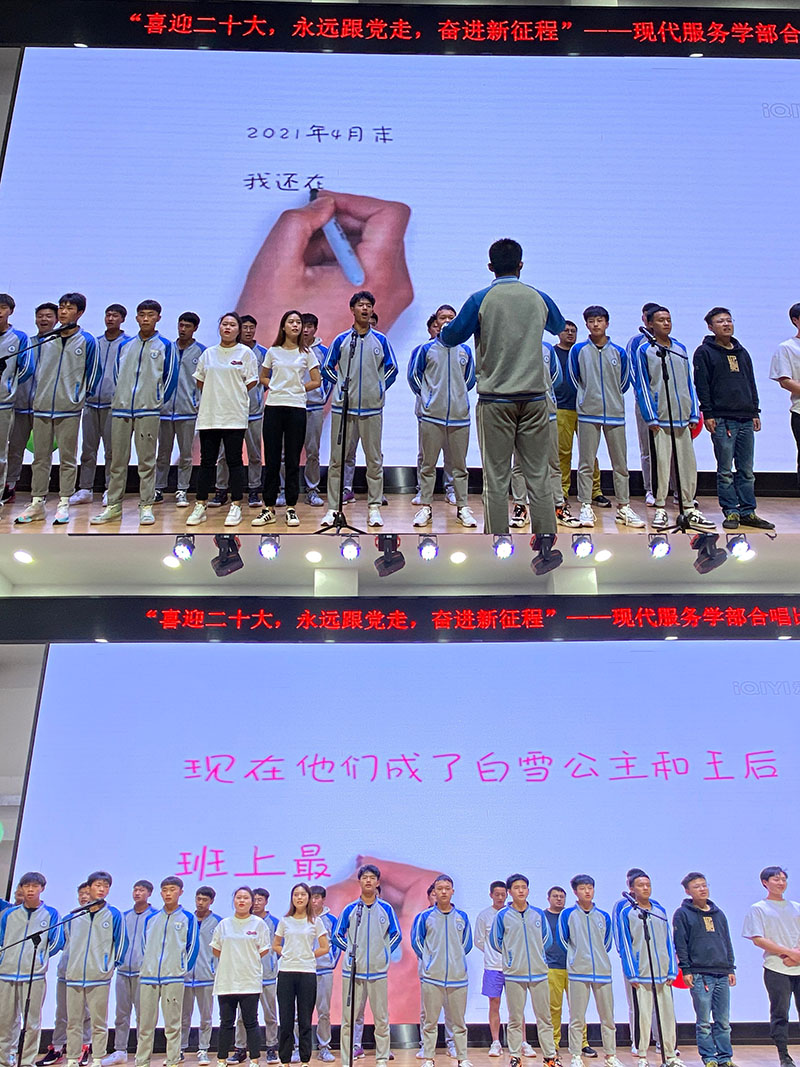 本次活动在学部的精心组织策划下圆满落幕,从一开始的学部领导高度重视,早早的对各班进行了细致部署;到班主任及时跟进,从选歌编排跟班合练再到精心制作同学们的合唱背景视频;学部所有老师积极参与,协调配合;全体同学们认真排练,精心设计服装,精选的小红旗和小道具等等,都展现了现代服务学部上下一心、团结奋进、精进先务的优良作风。