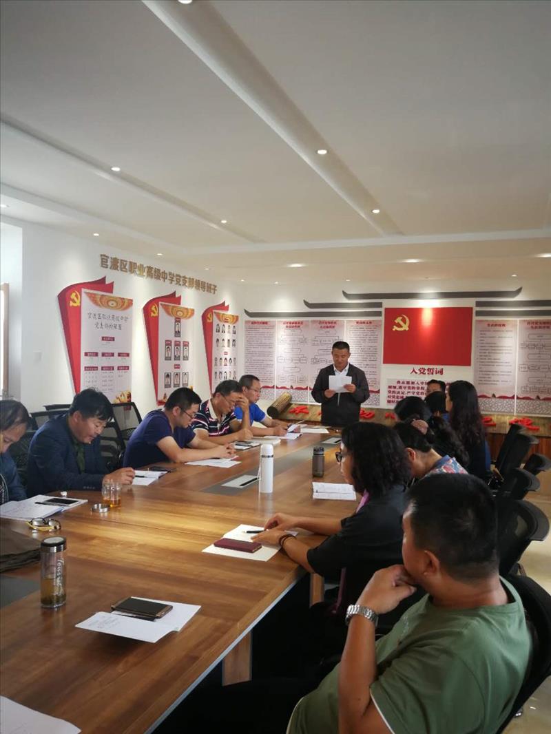 官渡职中党支部26日讯:9月26日下午,我校党支部在新的党建室召开全校党员大会、9月份“党员固定活动日”和党课等活动。活动由支部书记张毕祥主持。