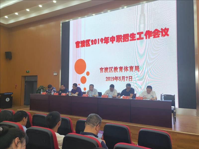 招就处讯:2019年5月7日下午2点30分,官渡区中职招生工作会在我校尚诚楼二楼新阶梯教室召开。官渡区教育体育局总督学魏泽明,职成教科科长李巍,招生办主任严家聪,区内35家公、民办初中学校(含完中初中部)校长、初三年级组长,官渡区华西航空旅游学校招生工作人员及分管领导,官渡区职业高级中学校长、分管领导、招生就业处办公室工作人员等参加了此次会议,会议在李巍科长的主持下有序进行。