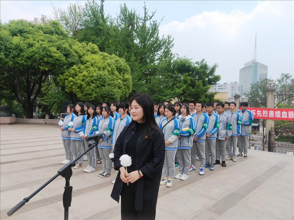 在纪念碑前,全体团员佩戴团徽,重温了入团誓词,齐唱了共青团团歌。随后,师生们瞻仰了纪念碑,献上了自己亲手叠的白花,并怀着无比崇敬的心情向烈士默哀肃立。